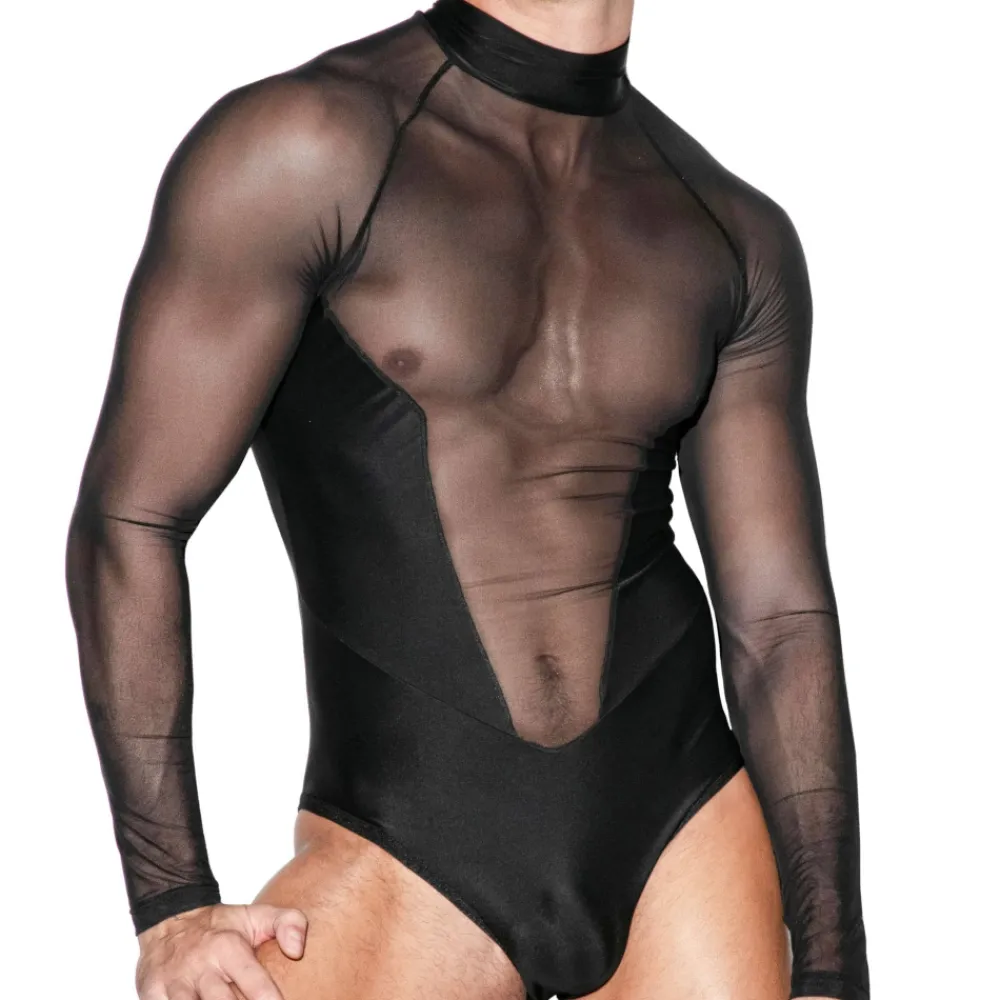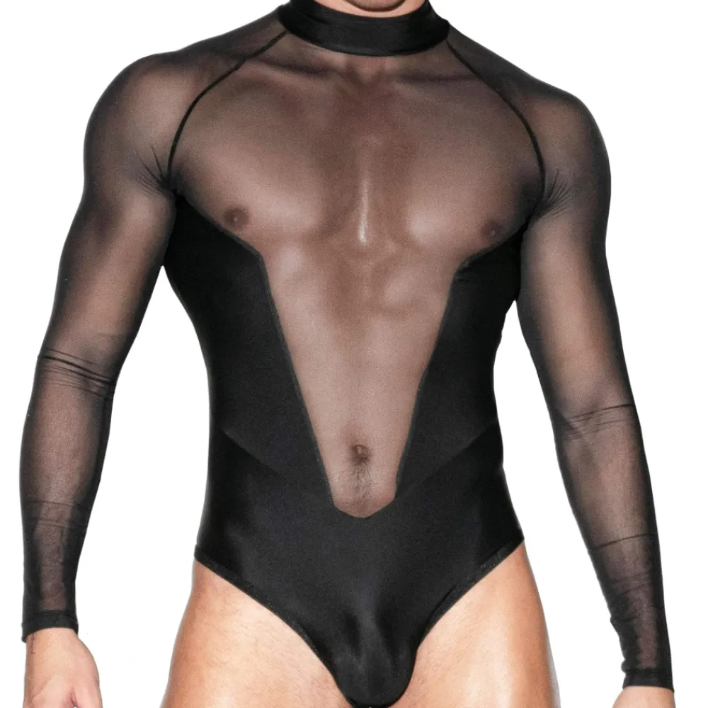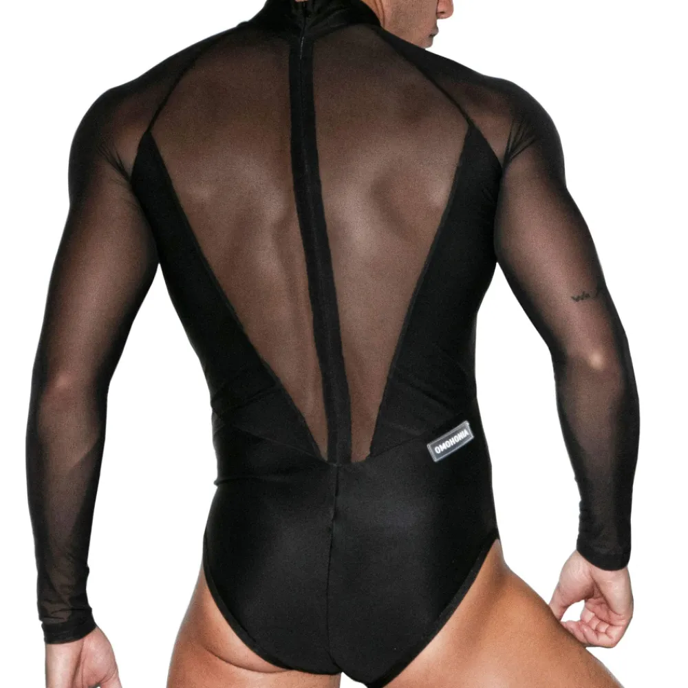 Body à manches longues en microfibre et tulle. Ce modèle élégant dévoile le corps par plusieurs empiècements transparents au niveau du buste, du dos et des bras. Fermeture Eclair invisible au dos. Etiquette Omohonia en silicone dans le dos.