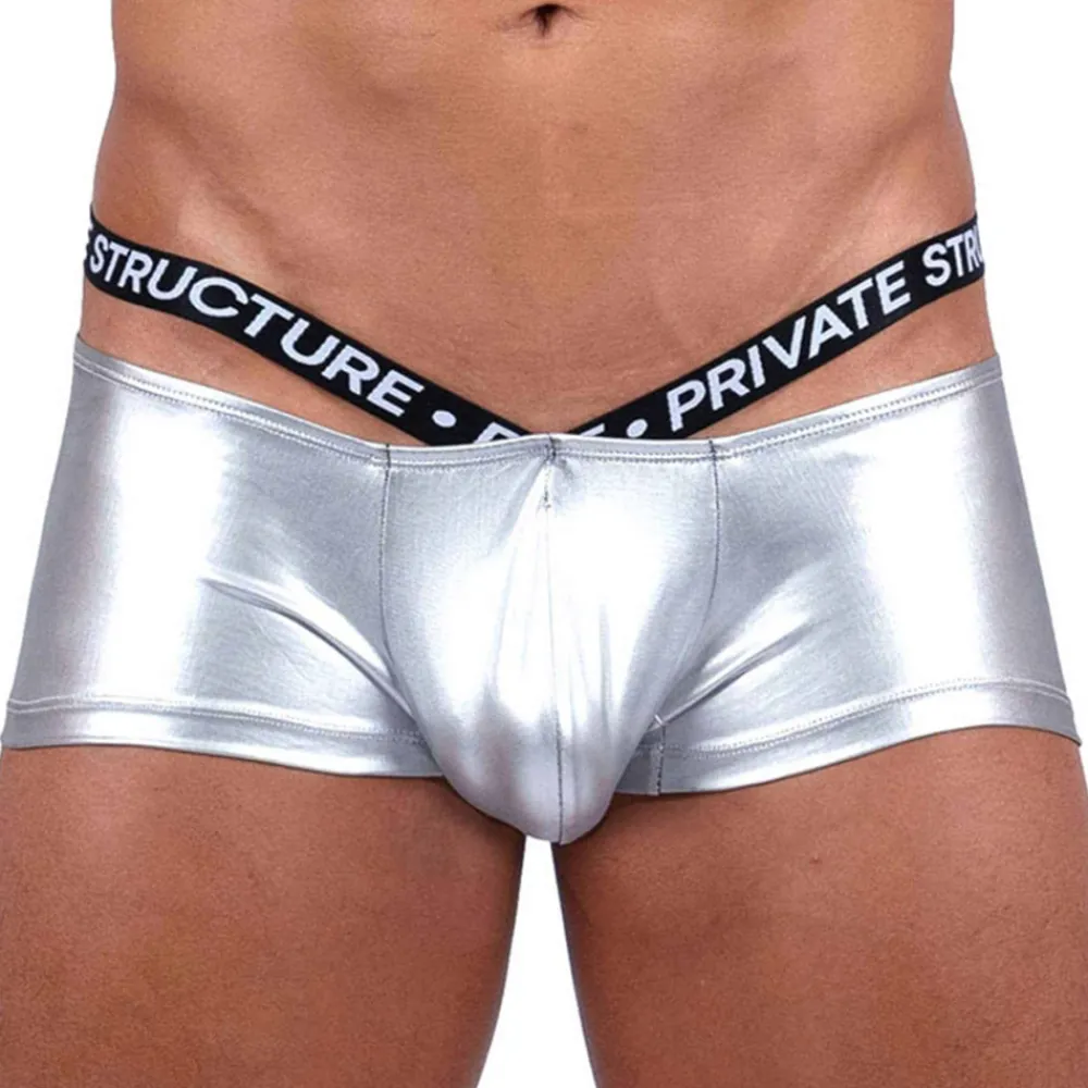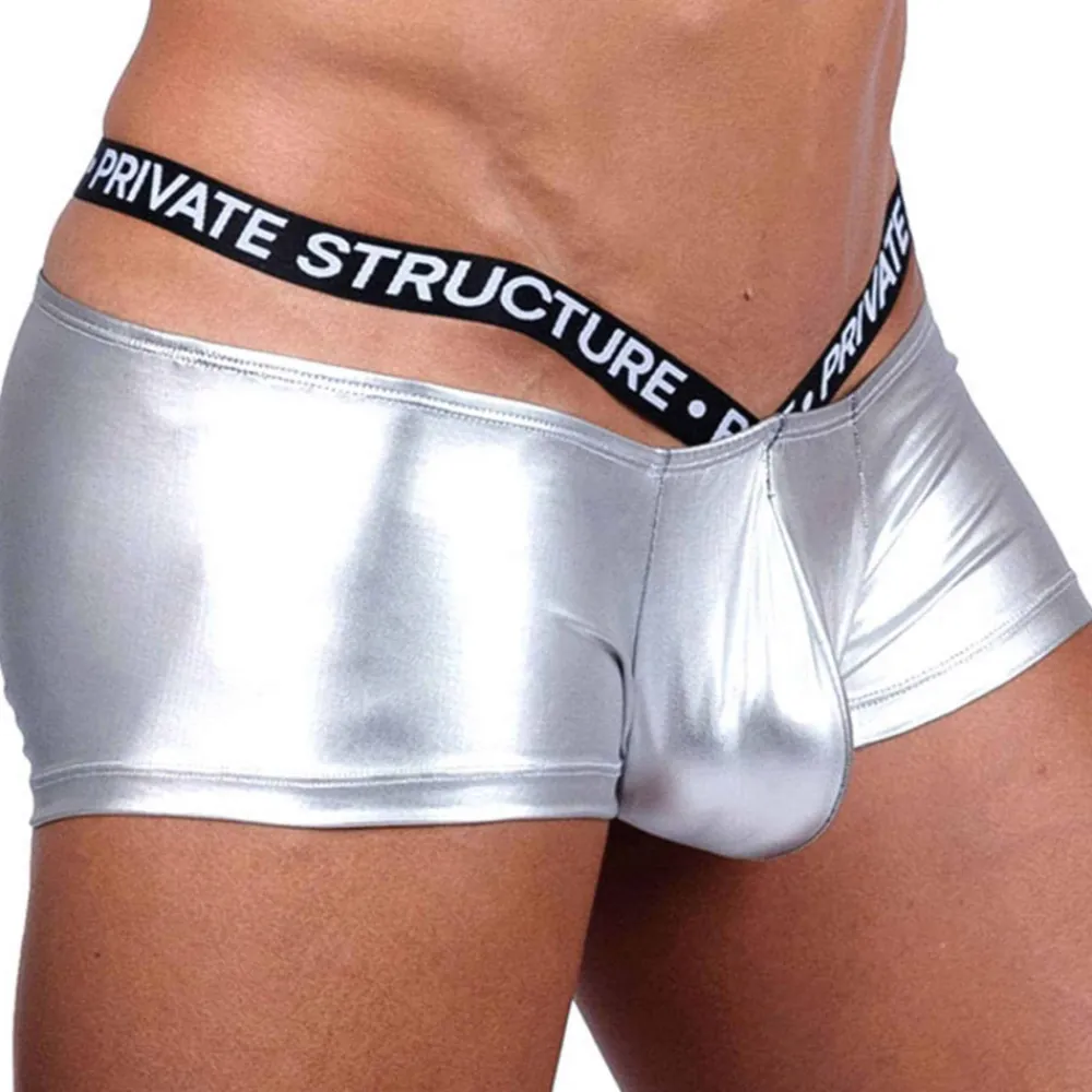 Shorty très sexy en microfibre métallique brillante. Coupe taille basse, minimaliste et très originale avec sa bande élastique logotypée sur les hanches. Poche frontale ergonomique doublée.