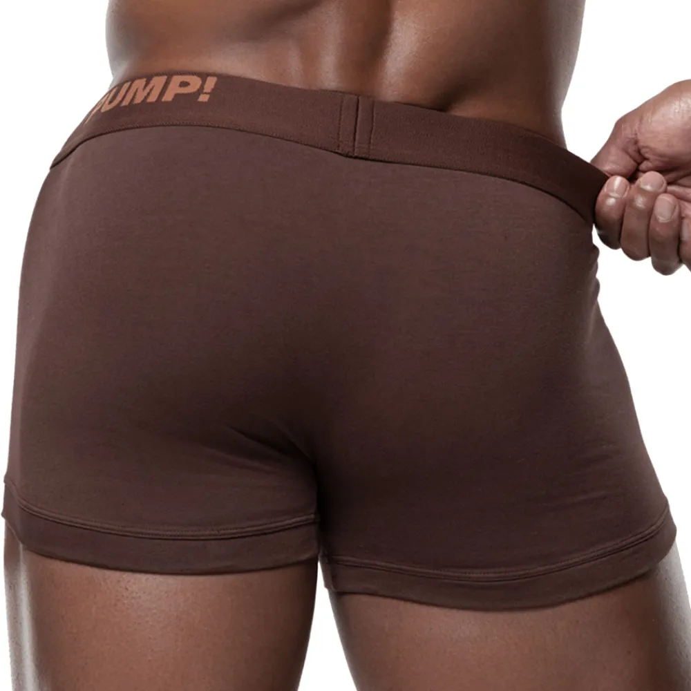 Boxer super confortable en coton extensible doux de couleur unie. Poche frontale doublée pour un confort maximal. Ceinture élastique signée PUMP!.