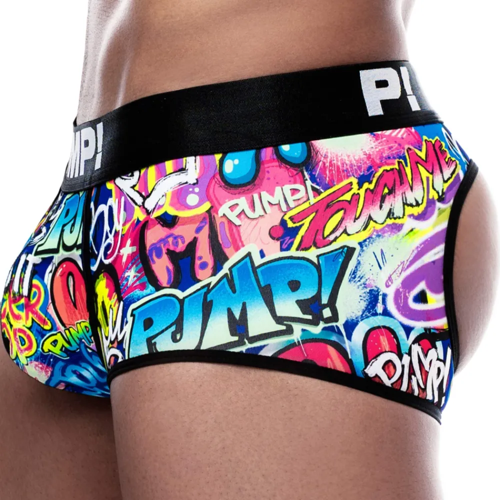 Shorty empty bottom doux et confortable en microfibre stretch recyclée à partir de bouteilles en plastique. Impression graffiti multicolore réalisée selon un éco-processus sans eau. Tissu très résistant au boulochage, à la chaleur, à la transpiration et à la lumière du soleil (UPF 50+). Poche frontale doublée en coton. Ceinture élastique signée Pump!. L’imprimé est positionné de façon aléatoire, ce qui rend chaque modèle unique.