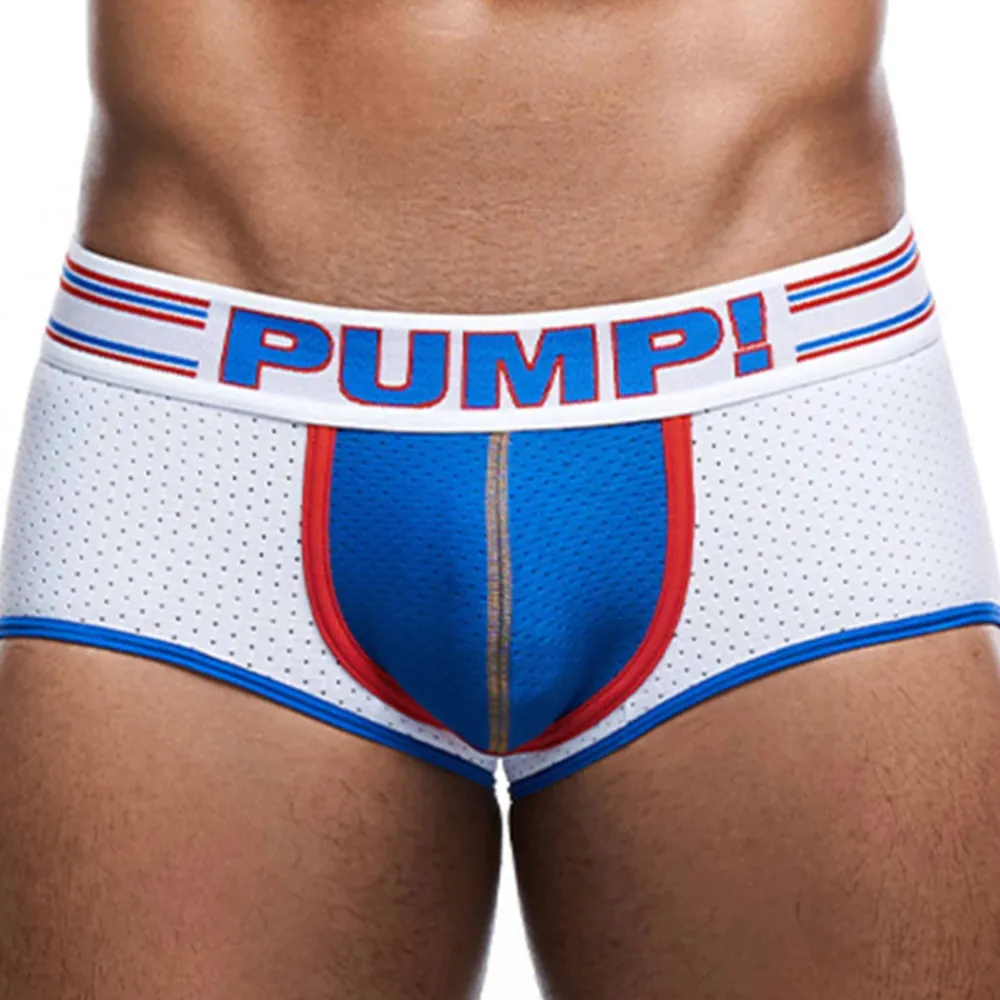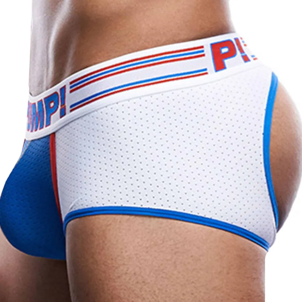 Shorty taille basse en micro-mesh doux, respirant et confortable. L’arrière a été découpé, à la manière d’un jockstrap, afin d’offrir une totale liberté de mouvement. Bordures des cuisses élastiquées. Poche frontale préformée et doublée en coton. Ceinture élastique large signée PUMP!.