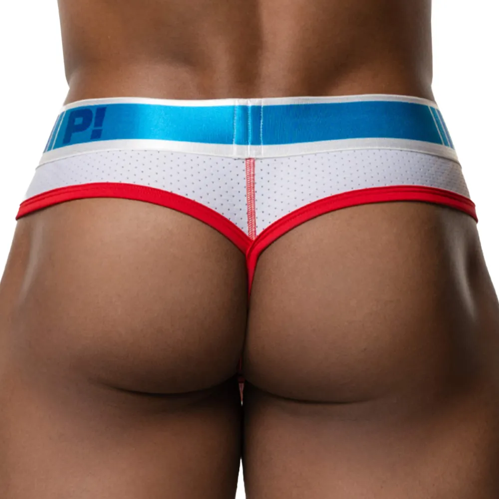 String en mesh ajouré respirant. Détails aux couleurs éclatantes de la Pride. Poche frontale doublée en coton pour un confort maximal. Ceinture élastique signée PUMP!.