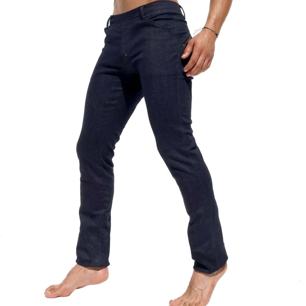 Jeans stretch taille basse en toile denim de qualité premium. Coupe slim très près du corps. 2 poches classiques à l’avant et 2 poches zippées à l’arrière. Les lignes incurvées à l’arrière – caractéristiques de la marque – mettent en valeur votre fessier. Ceinture élastique avec passants. Braguette factice. Fabriqué en Californie.