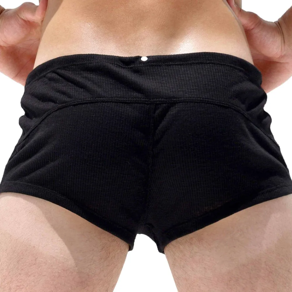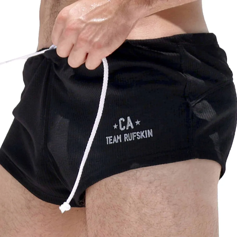 Short en coton mélangé, côtelé, ultra doux et confortable. Coupe courte, fluide et décontractée. Ceinture élastique avec cordon de serrage. Logo sérigraphié Team Rufskin sur la cuisse gauche. Fabriqué en Californie.
