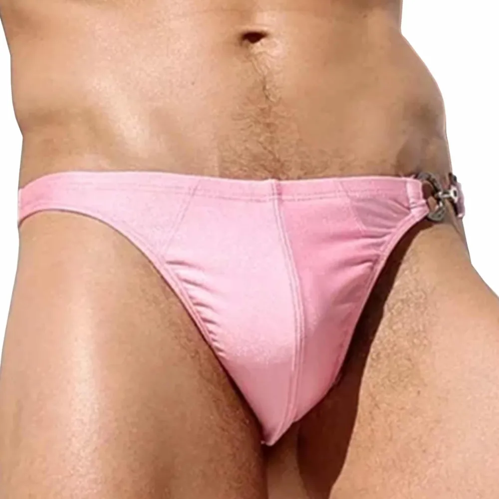 String de bain taille basse en microfibre extensible, douce et confortable. Coupe minimaliste très ajustée avec boucle et mousqueton métalliques sur le côté gauche. Finition satinée qui capte la lumière, offrant un look sensuel et sophistiqué. Poche frontale enveloppante doublée.