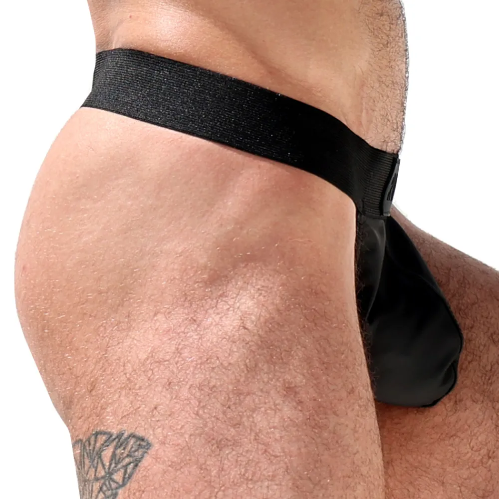 String sans ficelle composé d’un mélange de microfibre et de Spandex qui lui donne un aspect caoutchouteux mat. Poche frontale non doublée. Large ceinture élastique avec étiquette Rufskin en silicone.