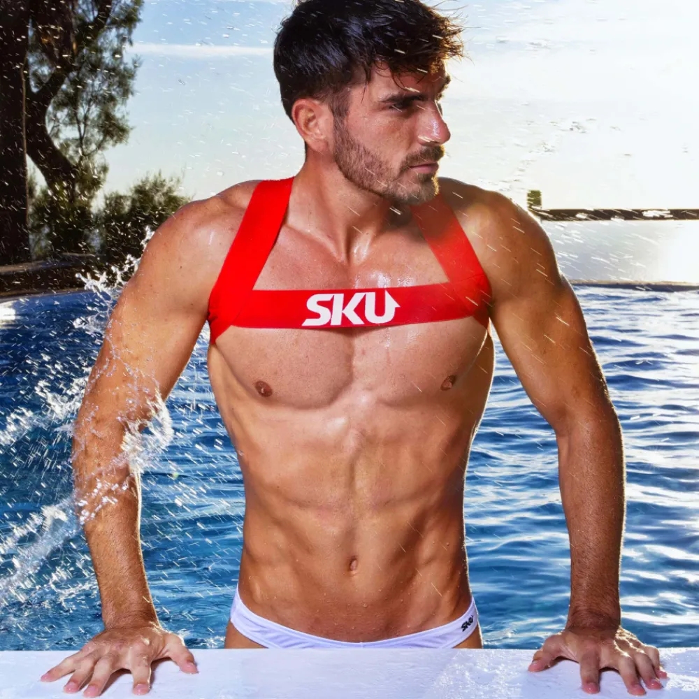 Harnais constitué de bandes élastiques larges formant un X dans le dos. Devant, la forme en H met en valeur vos pectoraux. Logo SKU de couleur contrastée à l’avant.
