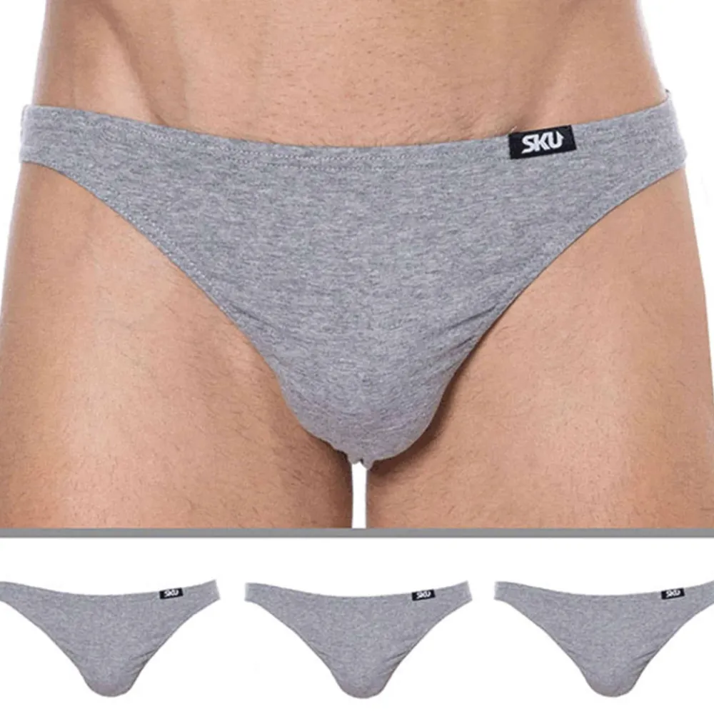 Lot de 3 slips sexy en coton premium doux et extensible de couleur unie. Coupe minimaliste, taille basse et ajustée. Poche frontale préformée assurant un excellent maintien. Confort enveloppant sur les fesses. Etiquette SKU cousue sur la fine ceinture élastique.