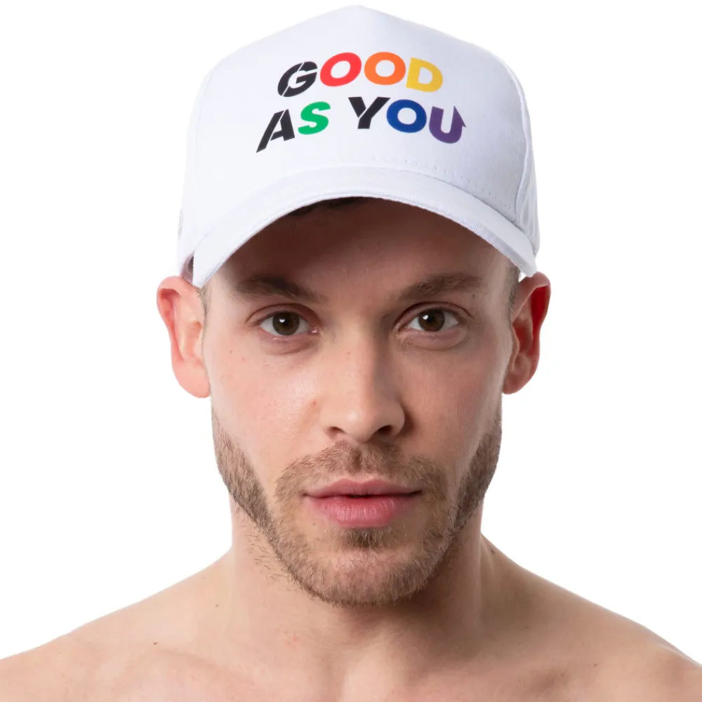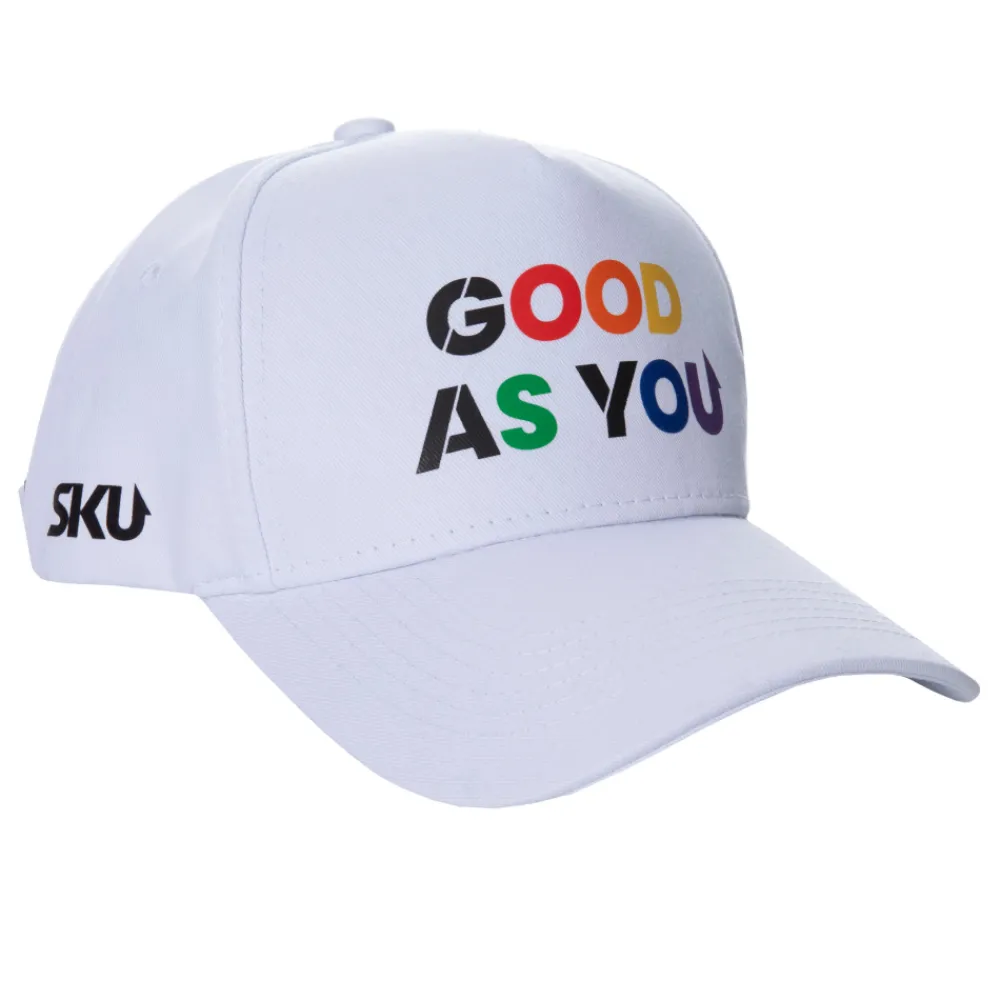Casquette à 6 panneaux en pur coton. Message inclusif Good As You aux couleurs de l’arc-en-ciel. Logo SKU sur le côté droit. Dos réglable avec fermoir en métal.