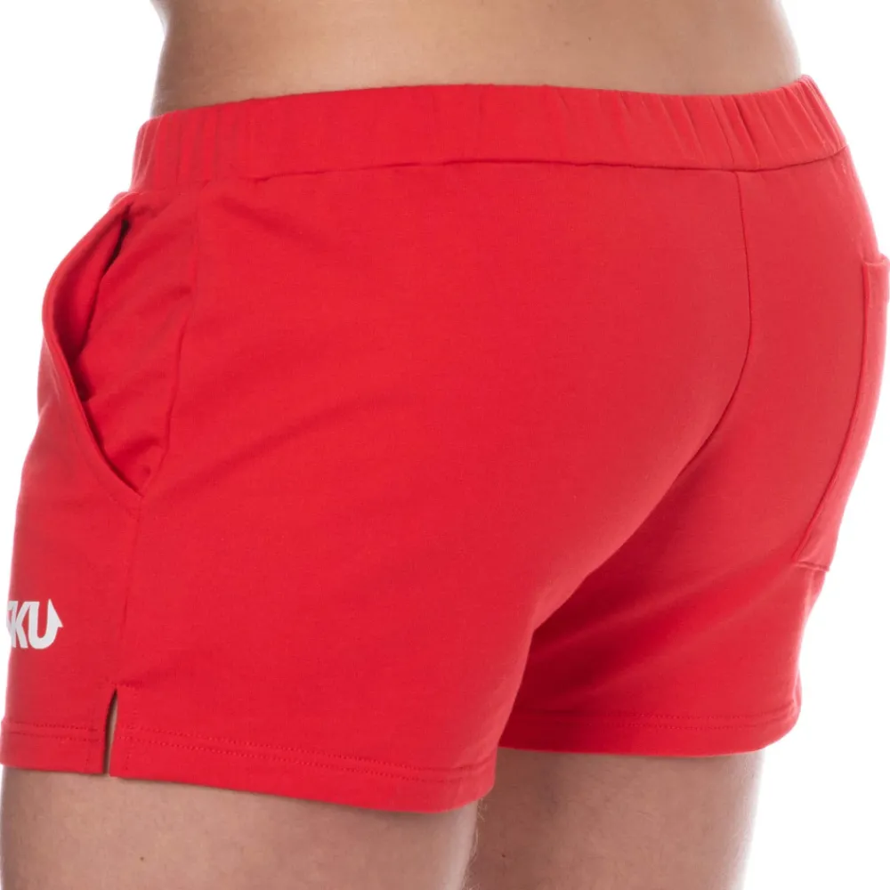 Short de sport très confortable en molleton 100% coton. Coupe courte, ajustée et échancrée sur les côtés. 2 poches latérales et une poche arrière. Logo SKU imprimé sur la cuisse gauche. Ceinture élastique recouverte.