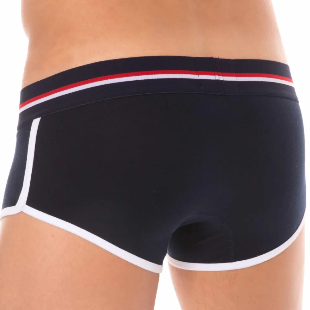 Shorty sport et sexy en coton premium doux et extensible de couleur intense. Coupe taille basse ajustée. Poche frontale préformée assurant un excellent maintien. Confort enveloppant sur les fesses. Belle échancrure sur le côté. Ceinture tricolore large et douce signée SKU. Bordures contrastées.
