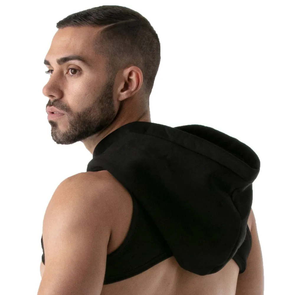 Harnais à capuche en coton doux et confortable. Coupe très ajustée pour souligner votre musculature. Grande poche à fermeture Eclair. Ecusson TOF côté cœur. Fabrication française.