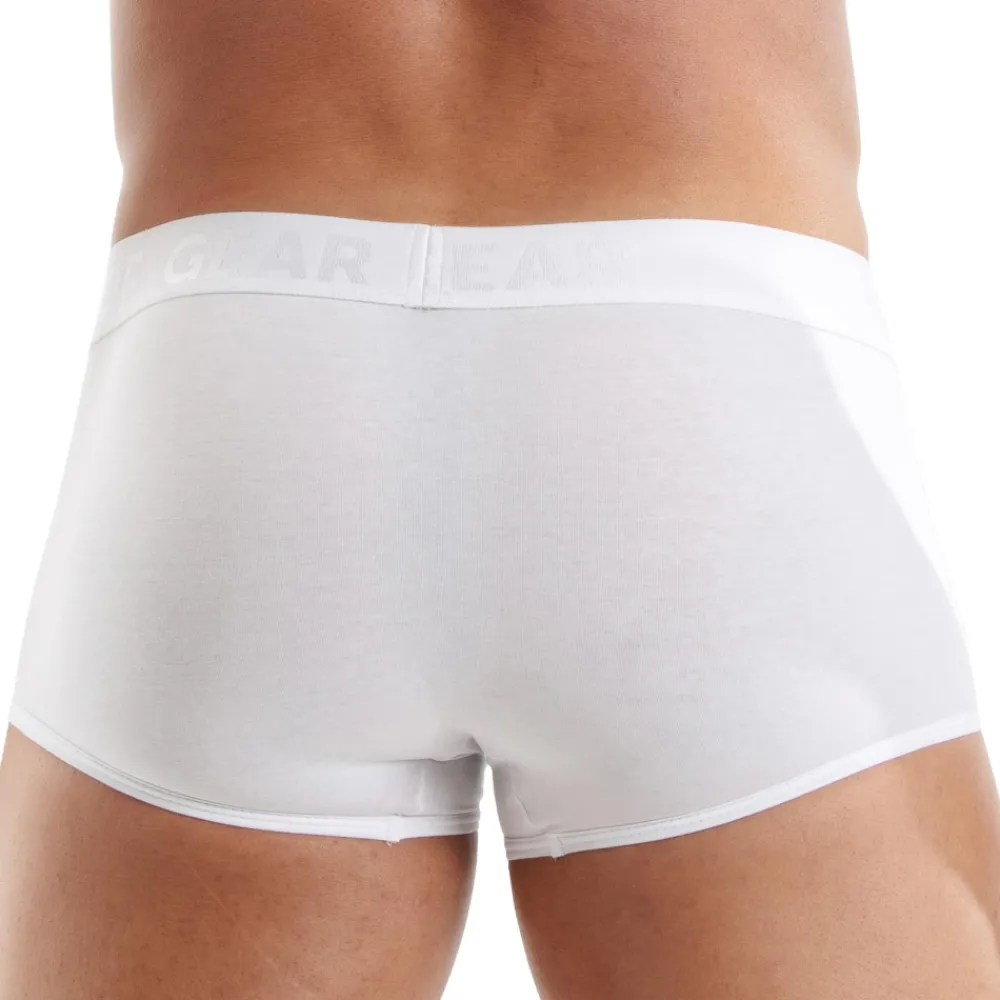 Boxer doux et confortable en coton extensible de couleur unie. Coupe taille basse et ajustée. Poche frontale non doublée. Ceinture élastique satinée en jacquard signée TOF GEAR ton-sur-ton. Fabrication française.