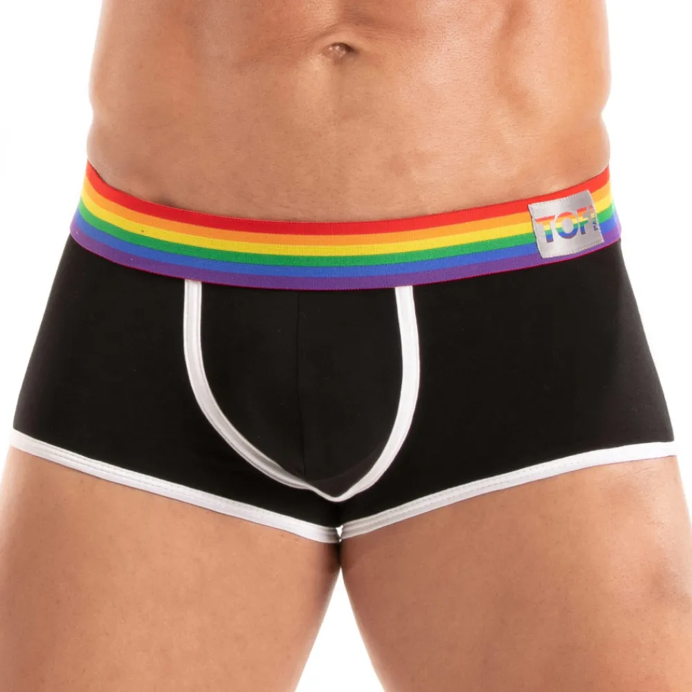Boxer court en coton extensible très doux et confortable. Coupe taille basse, simple et élégante. Poche frontale non doublée. Bordures de couleur contrastée. Ceinture élastique aux couleurs de l’arc-en-ciel avec étiquette satinée TOF Paris. Fabrication française.