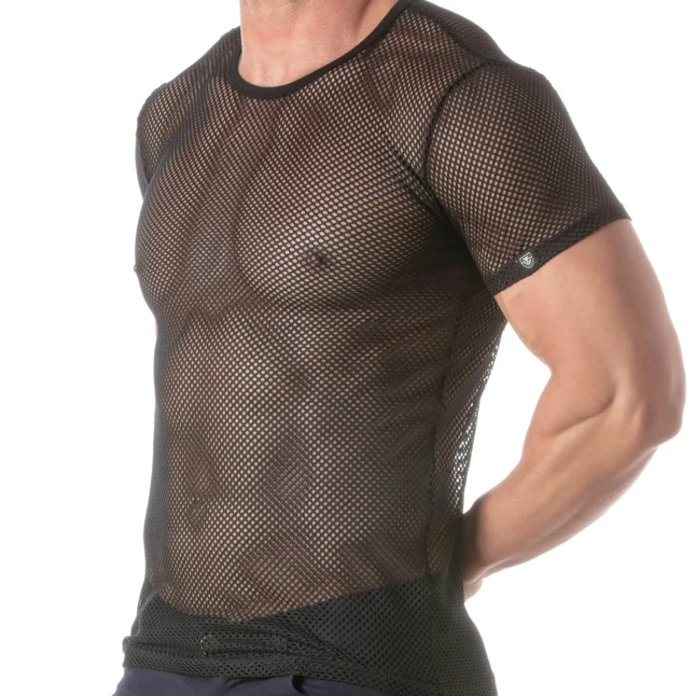 T-shirt très sexy en résille à maille large, qui ne laisse pas grand-chose à l’imagination. Manches courtes et col rond. Etiquette logo TOF Paris cousue sur la manche gauche. Fabrication française.