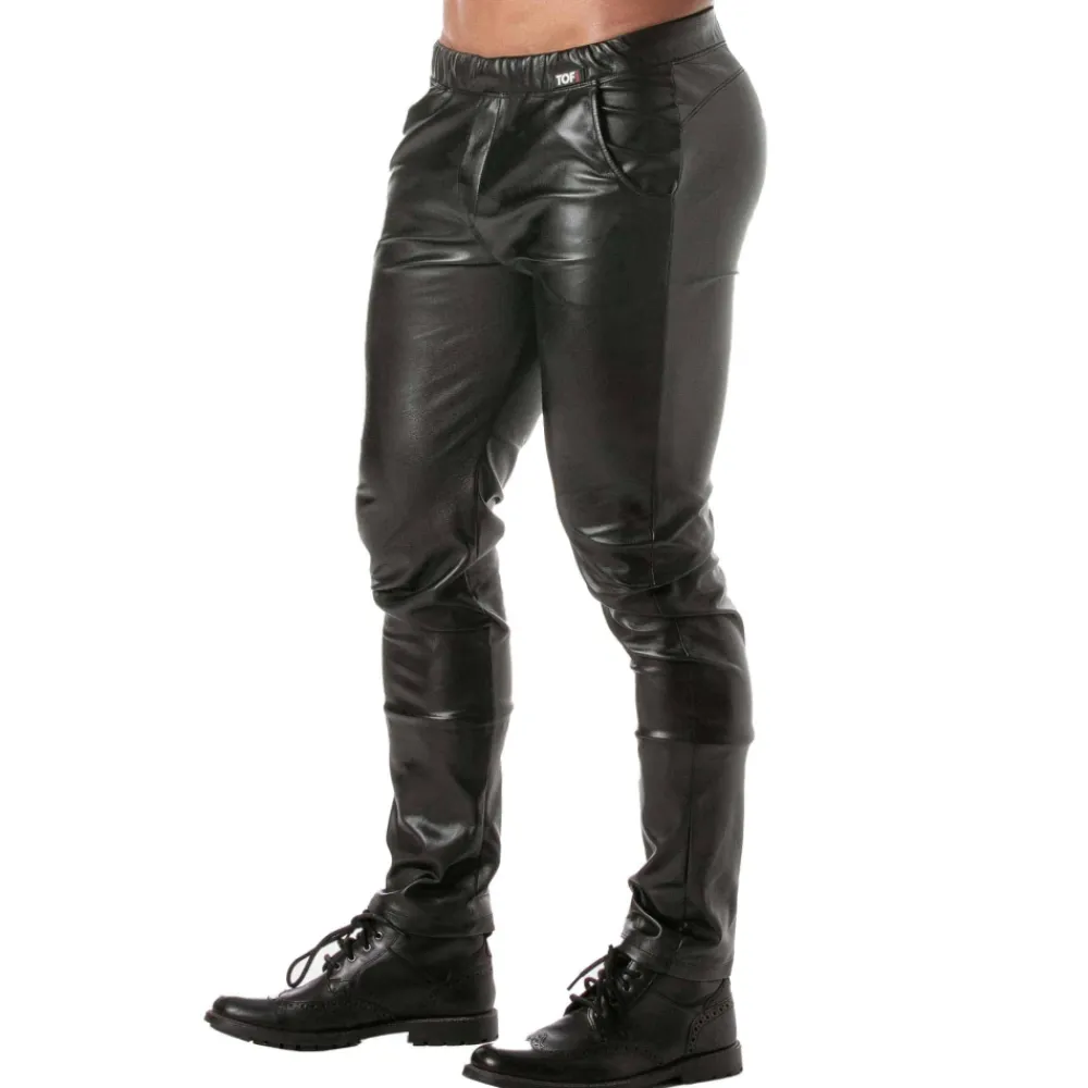 Pantalon sexy en simili-cuir extensible pour un look fetish. Coupe sport très confortable. 2 grandes poches latérales et une poche arrière. Braguette à boutons-pression. Ceinture élastique avec cordon de serrage intérieur. Fabrication française. Conseils d’entretien : laver en machine à 30°, ne pas sécher en machine, ne pas repasser.