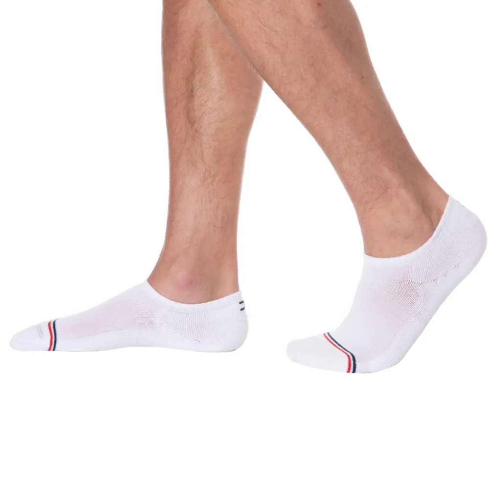 Lot de 2 paires de chaussettes invisibles en coton mélangé, doux et extensible. Courtes, elles restent invisibles dans vos chaussures. Rayures et drapeau iconique tricolores. 2 bandes antidérapantes en silicone au talon. Taille 39-42 et 43-46.