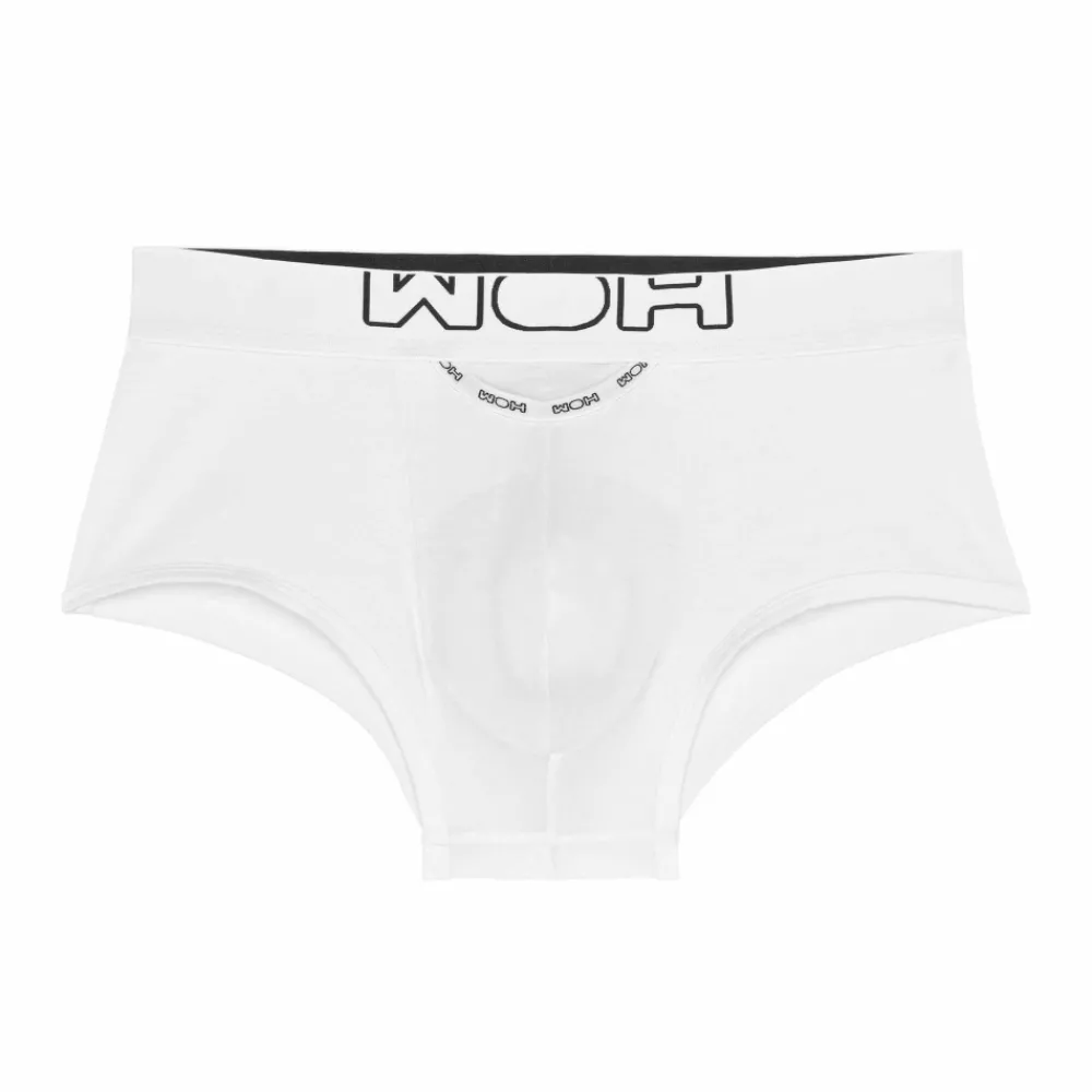Boxer court en coton doux et très agréable à porter. Tissu de qualité supérieure certifié Oeko-Tex. Coupe taille basse très ajustée. Ouverture horizontale, aussi pratique pour les droitiers que les gauchers. Ceinture élastique signée WOH.