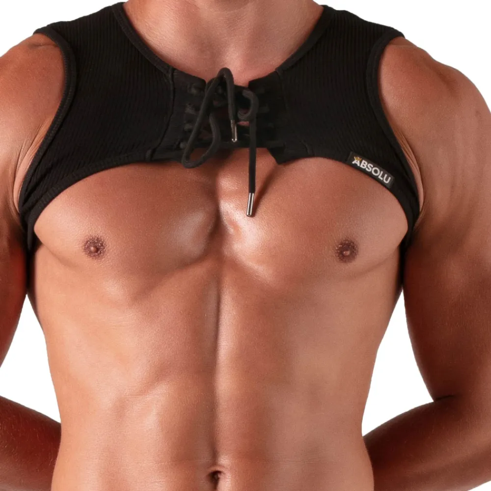 Harnais sexy en coton côtelé très doux et confortable. Laçage façon corset à l’avant. Fabrication française.