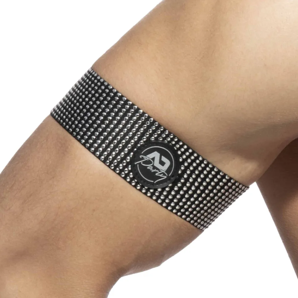 Brassard sexy et original constitué d’une large bande élastique recouverte de picots argentés apportants des reflets métalliques scintillants. Logo AD Party en silicone. Vendu à l’unité.