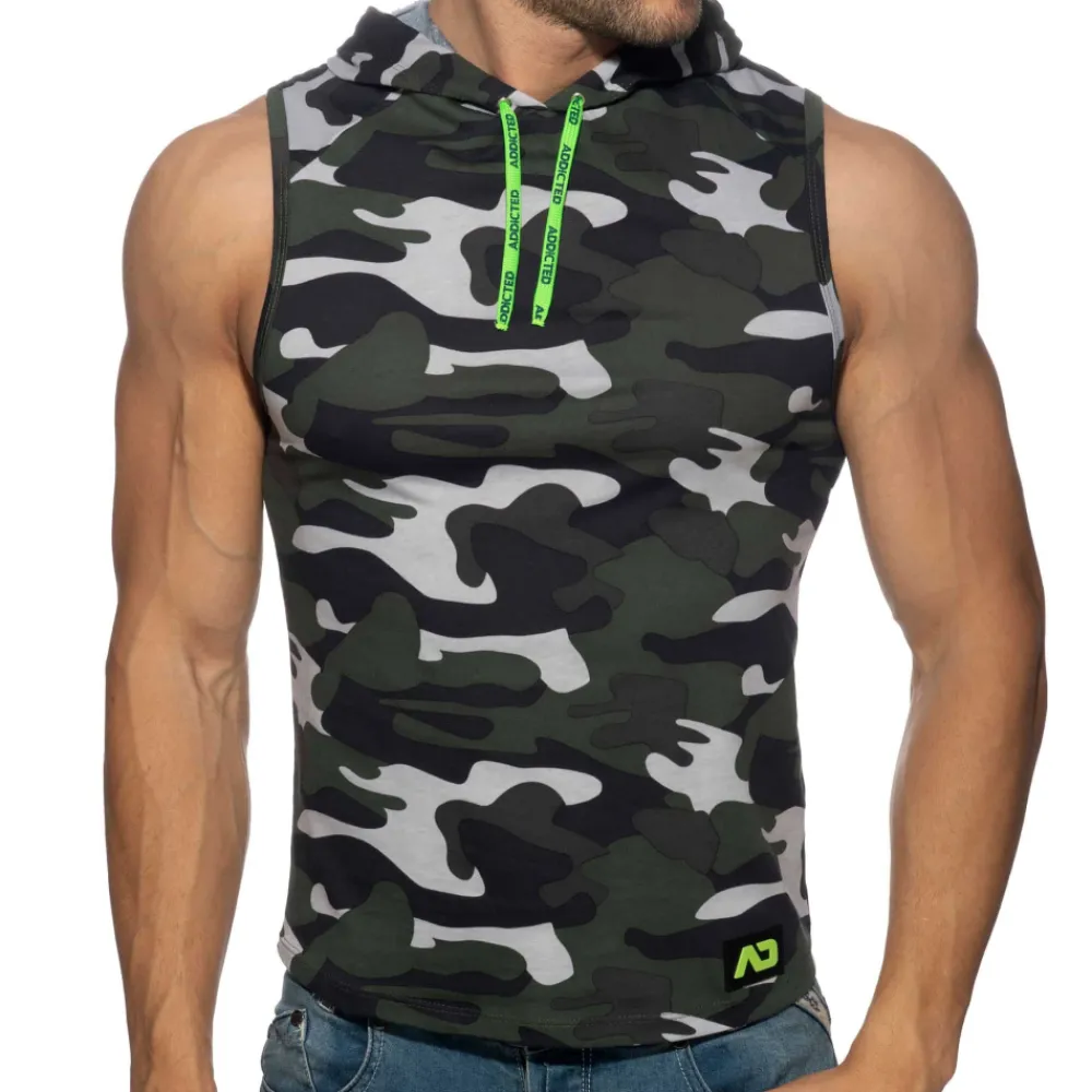 Addicted Débardeurs-Débardeur à Capuche Bande Logo Camouflage