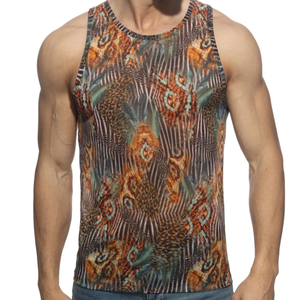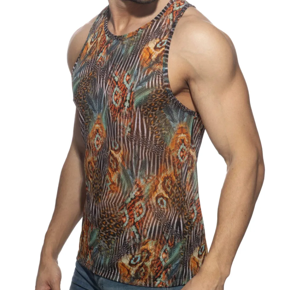 Débardeur en microfibre ultra légère et respirante imprimée d’un motif animal très tendance. Coupe ajustée. Col rond.