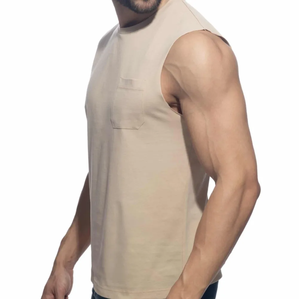 Débardeur ajusté en pur coton doux. Bordure des manches sans couture. Poche sur la poitrine. Logo Addicted dans le dos.