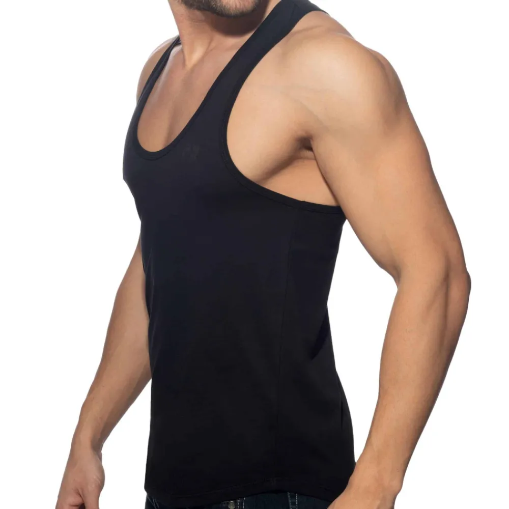 Débardeur 100% coton, sexy et confortable, idéal pour le sport. Coupe ajustée avec dos nageur et col en U profond. Imprimé Addicted ton sur ton sur la poitrine gauche et dans le dos.