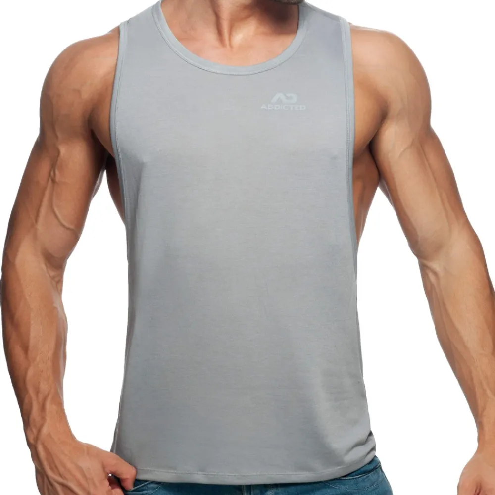 Débardeur en tissu très fin et confortable, idéal pour le sport. Large ouvertures sous les bras. Imprimé Addicted ton sur ton sur la poitrine gauche et dans le dos.