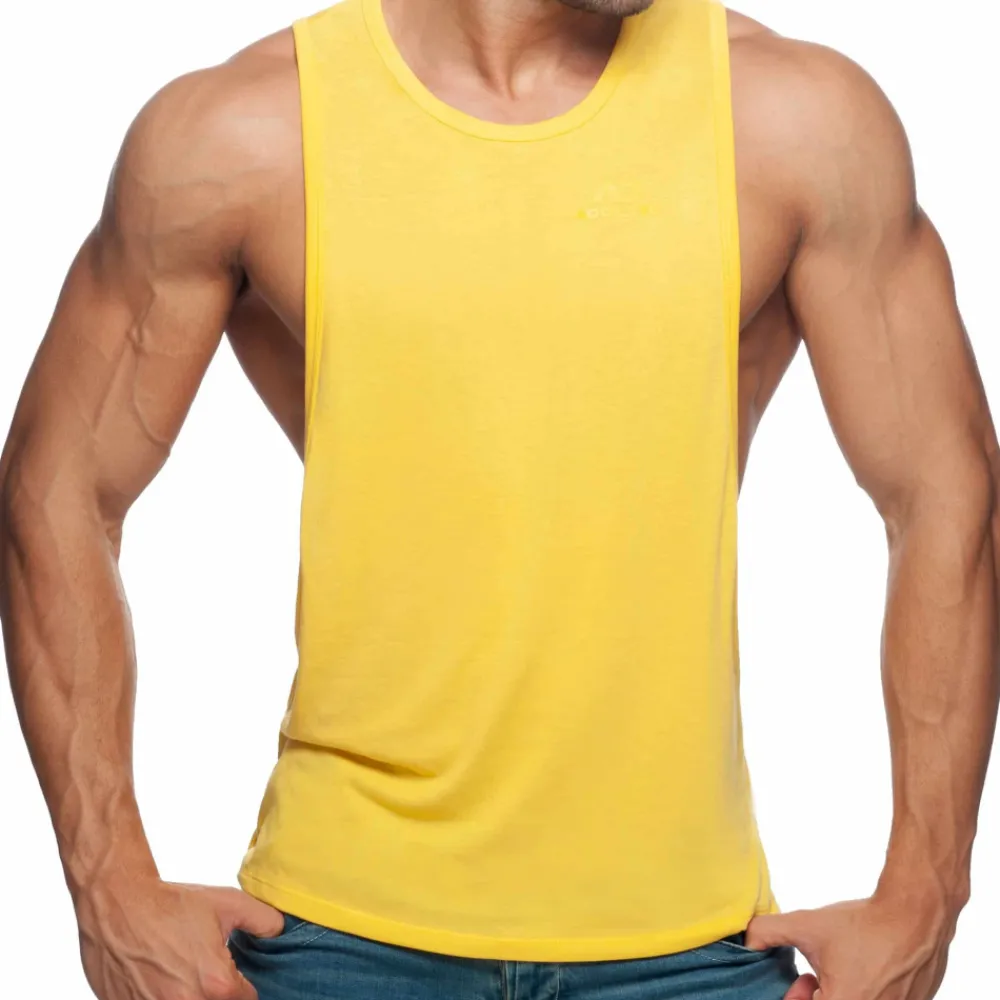Débardeur en tissu très fin et confortable, idéal pour le sport. Large ouvertures sous les bras. Imprimé Addicted ton sur ton sur la poitrine gauche et dans le dos.