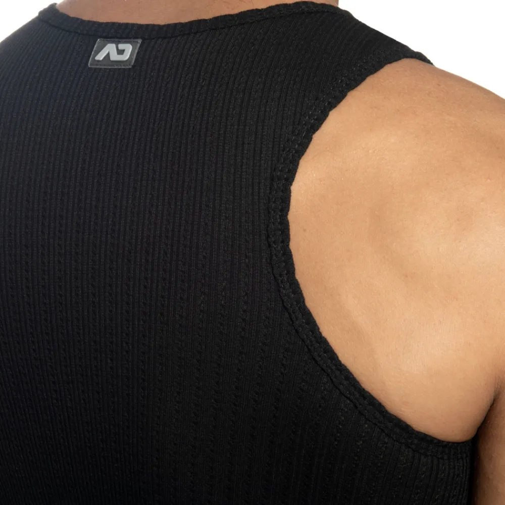 Débardeur confortable en mélange super doux et extensible de coton et de microfibre. Tissu chaud, côtelé et moelleux, conservant cependant une légère transparence. Coupe ajustée avec col rond. Logo AD en silicone dans le dos.
