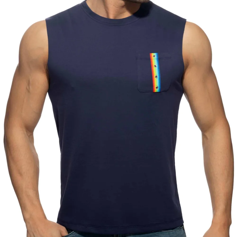 Débardeur en pur coton doux et confortable. Petite poche sur la poitrine avec bande aux couleurs de l’arc-en-ciel. Logo Addicted en silicone dans le dos.