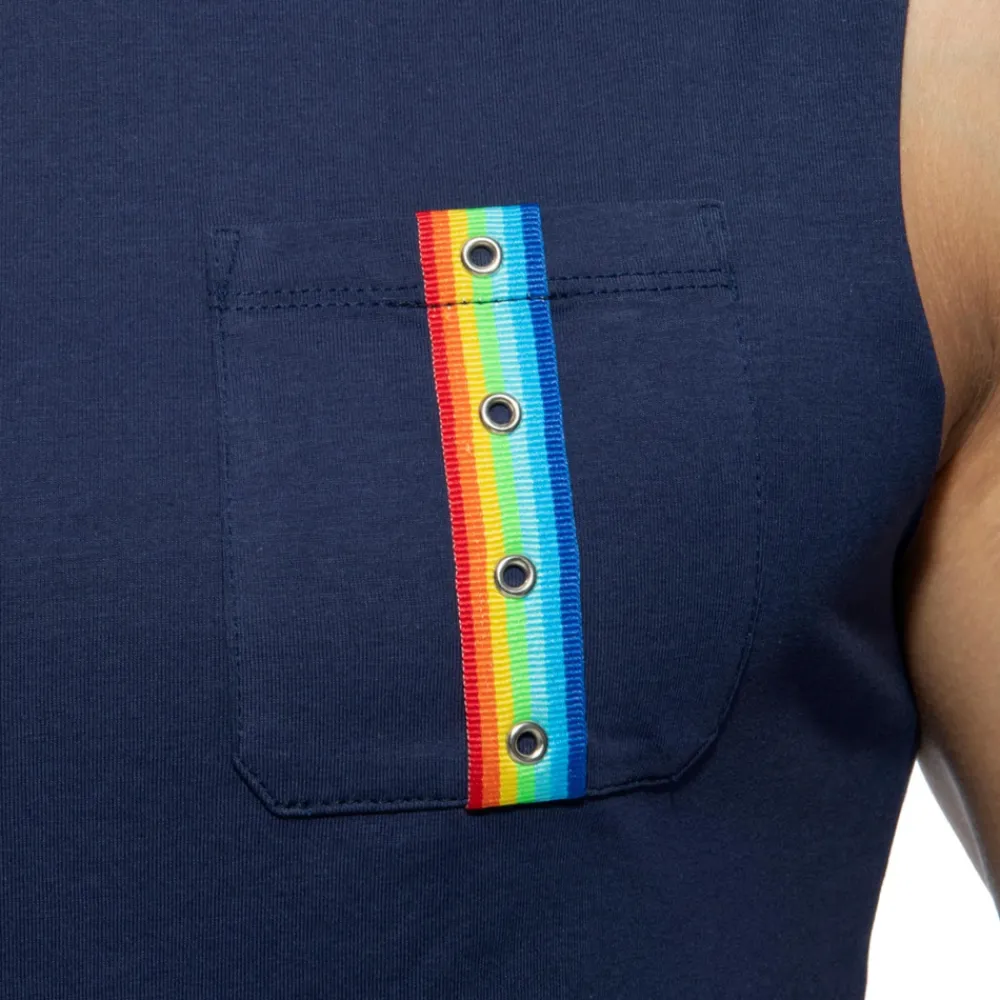 Addicted Débardeurs-Débardeur Rainbow Tape Bleu Marine