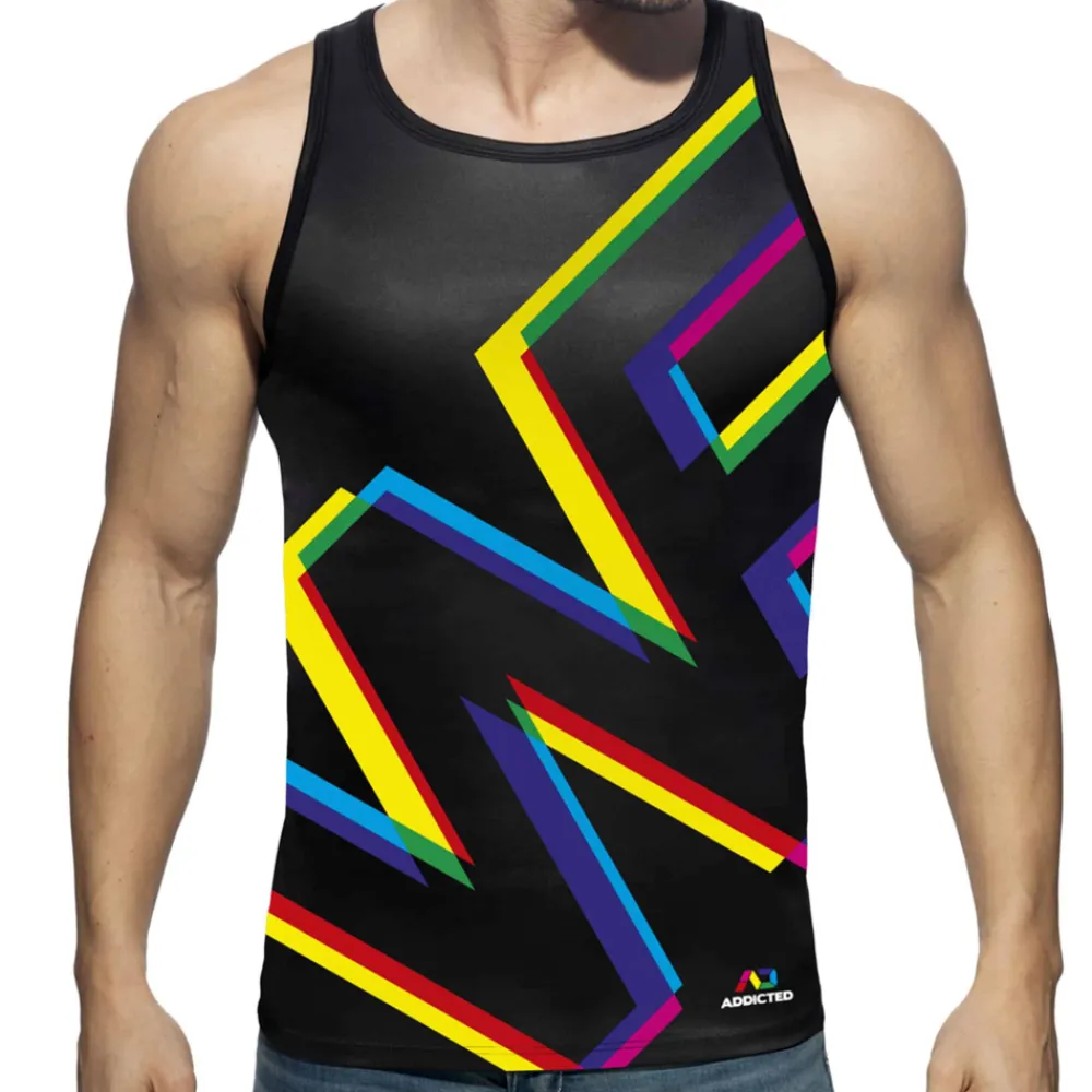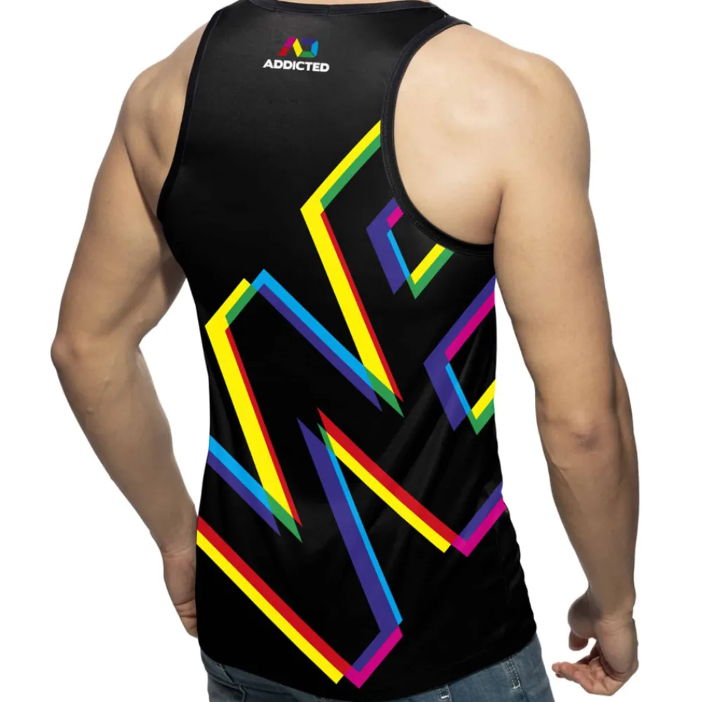 Débardeur officiel du WE PARTY FESTIVAL 2024. Conçu en microfibre douce et confortable. Imprimé digital WP fun et coloré. Coupe ajustée. Col rond. Logo Addicted Rainbow en haut du dos et sur la hanche gauche.