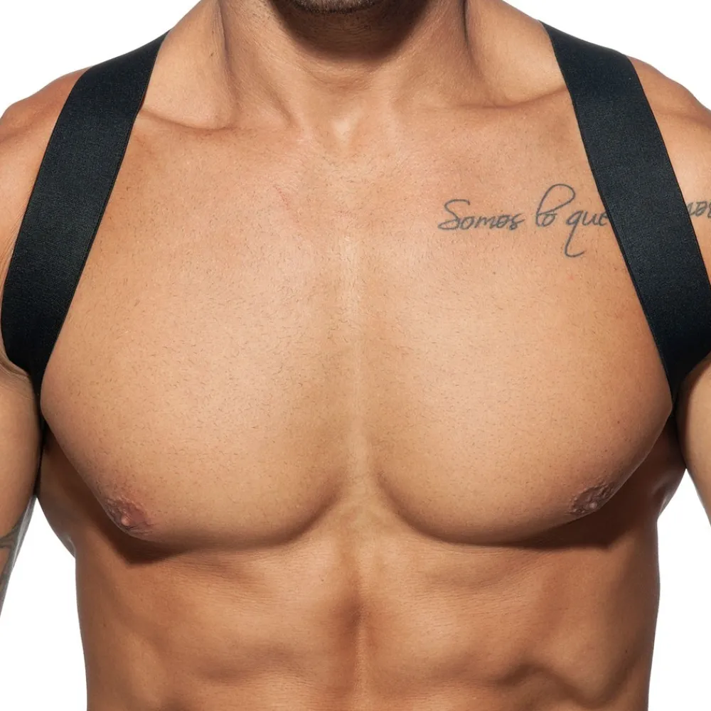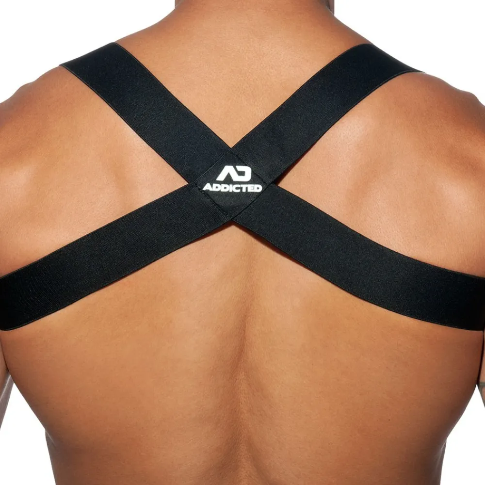 Harnais simple et confortable dont les larges bandes élastiques forment un X en haut du dos.