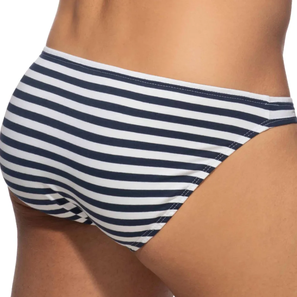 Slip taille basse très sexy en coton doux, léger et confortable. Rayure nautique. Coupe minimaliste très ajustée. Poche frontale moulée sans couture pour un confort optimal. Logo Addicted en silicone sur la fine ceinture élastique.