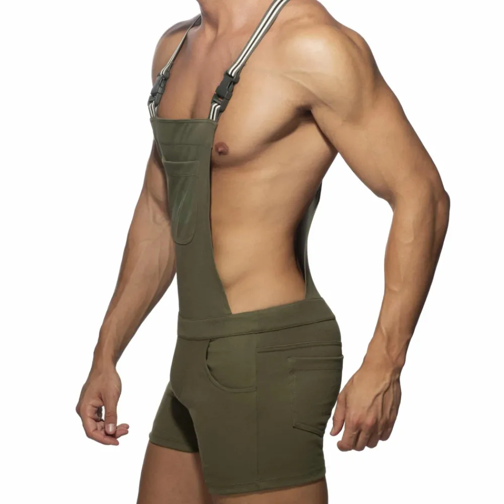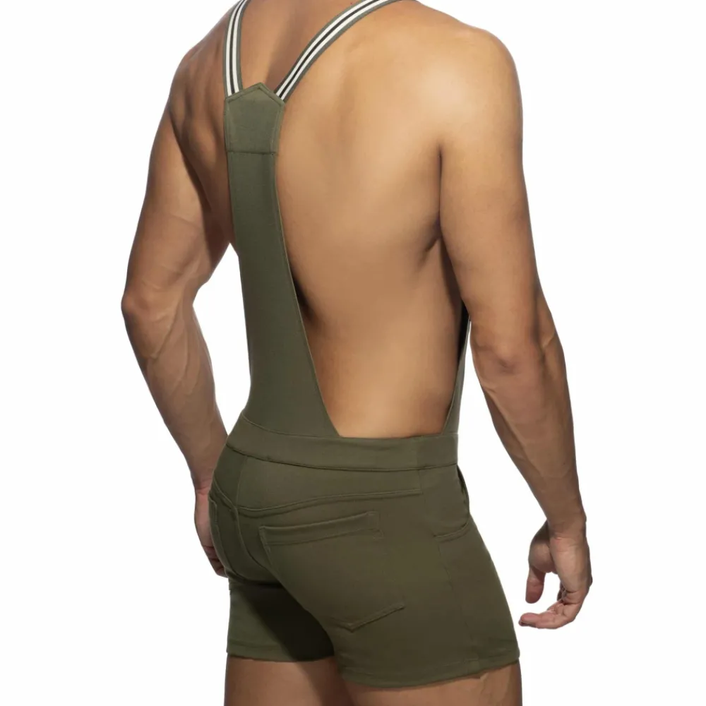 Salopette sexy en mélange doux et fin à base de coton. Poche sur la poitrine avec logo AD imprimé. Deux poches latérales et deux poches arrières. Bretelles élastiques tricolores avec clips fonctionnels.