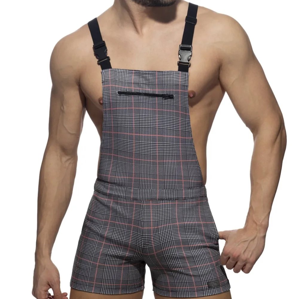 Salopette en molleton italien de qualité premium imprimé d’un motif écossais à carreaux très tendance. Coupe très ajustée. Bretelles réglables avec clips fonctionnels. Poche à fermeture Eclair sur la poitrine. Poches latérales. Logo AD en silicone sur la jambe gauche dans le dos.