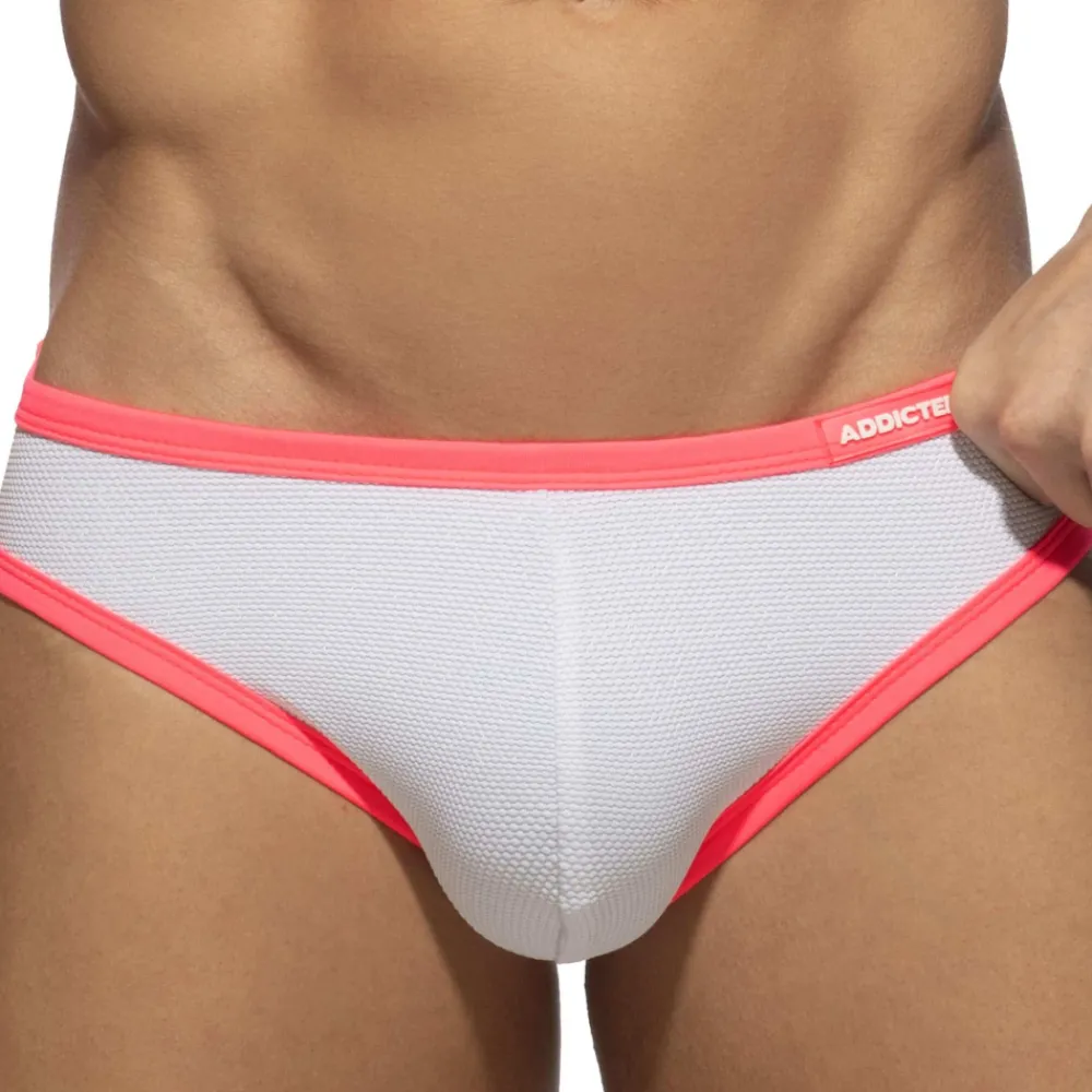Addicted Slips De Bain-Slip de Bain Bikini Neon Snow White Blanc – Rose Fluo