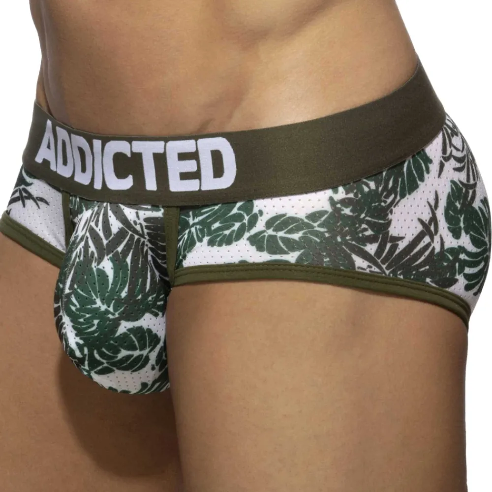 Lot de 2 slips en résille ultra-légère, respirante et confortable. Motif tropical très tendance dans 2 teintes différentes. Poche frontale non doublée de grande capacité. Ceinture élastique signée Addicted.