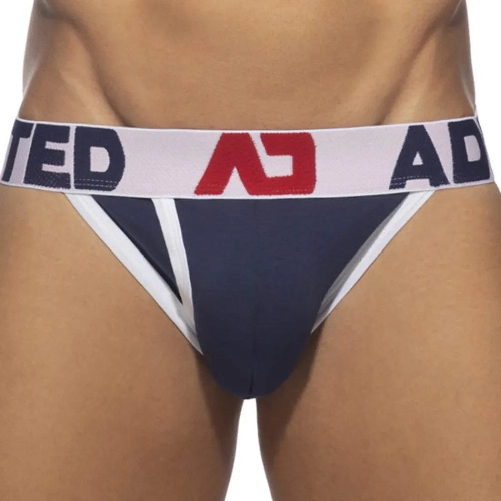 Slip tanga doux et confortable en coton extensible. Poche frontale doublée avec ouverture sur le côté droit pour un accès facile. Détails de couleur contrastée. Large ceinture élastique signée Addicted.