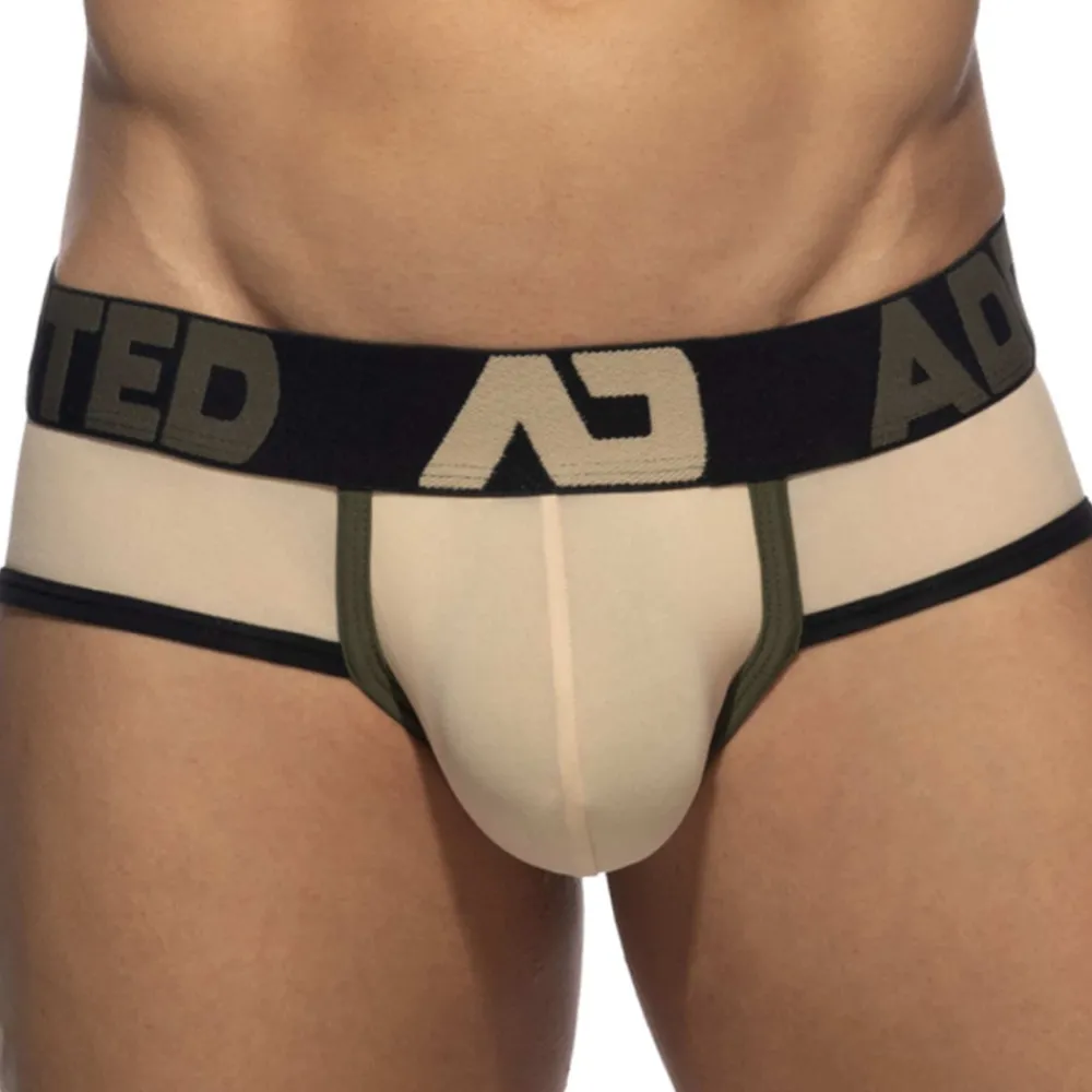Slip en mélange doux et souple de microfibre et de coton. Coupe taille basse et ajustée. Grande poche frontale push up pour un excellent maintien et une valorisation naturelle de votre masculinité. Bordures de couleur contrastée. Large ceinture élastique signée Addicted.