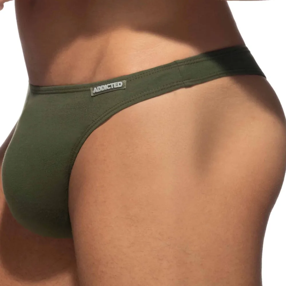 String taille basse très sexy en coton doux, léger et confortable. Coupe très ajustée. Poche frontale moulée sans couture pour un confort optimal. Logo Addicted en silicone sur la fine ceinture élastique.