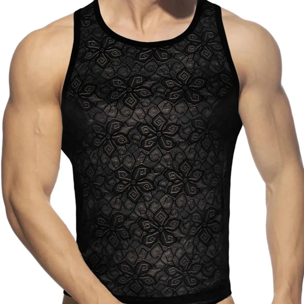 Débardeur sexy en dentelle décorée d’un motif floral. Coupe très ajustée. Logo Addicted en silicone en haut du dos.