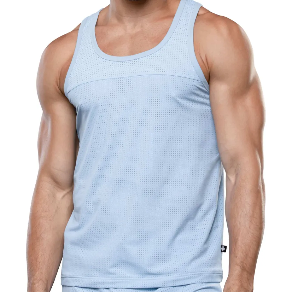 Andrew Christian Débardeurs-Débardeur Gym Mesh Breeze Bleu Clair