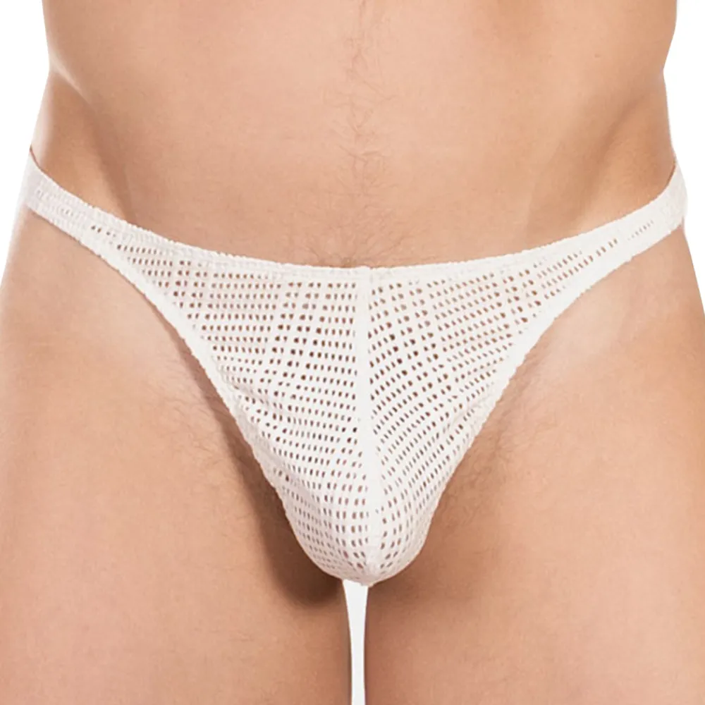 String taille basse très sexy en résille non doublée pour une totale transparence. Coupe minimaliste très ajustée. Etiquette Barcode en silicone en haut des fesses.