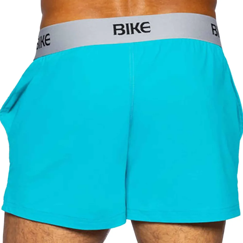 Short sport intégrant un jockstrap pour un confort et un maintien incomparables. En microfibre extensible, douce et légère. 2 poches. Large ceinture élastique de couleur contrastée signée BIKE.