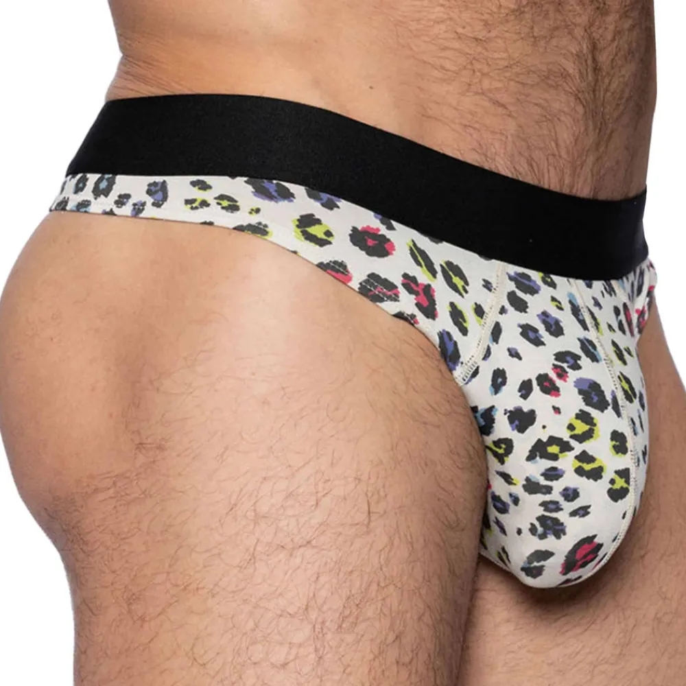 String sport et sexy en modal extensible super doux et confortable. Imprimé léopard. Coupe taille basse très ajustée. Poche frontale doublée. Ceinture élastique signée BIKE en lettres dorées.