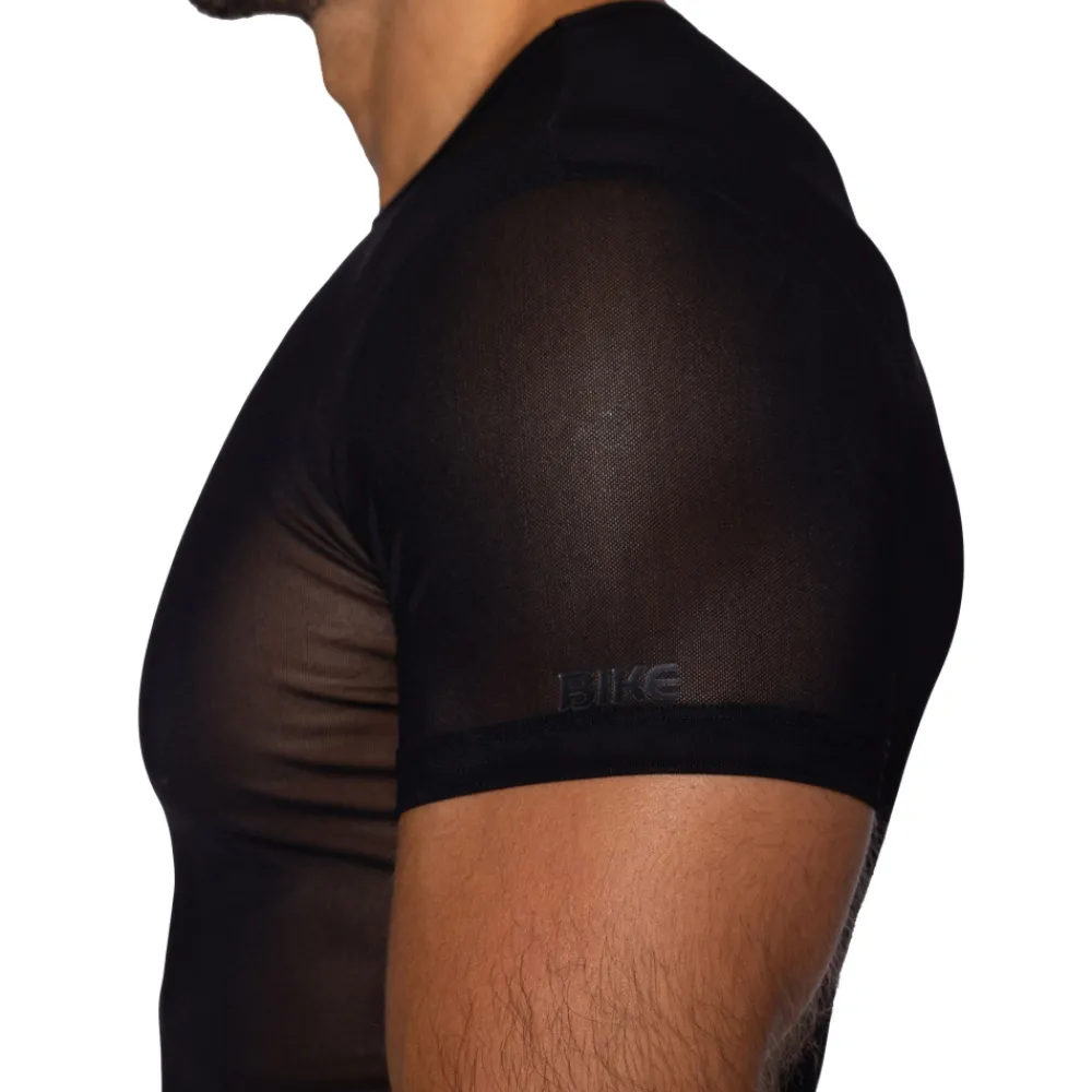 T-shirt sexy en fine résille transparente, légère et respirante. Coupe ajustée. Col rond.