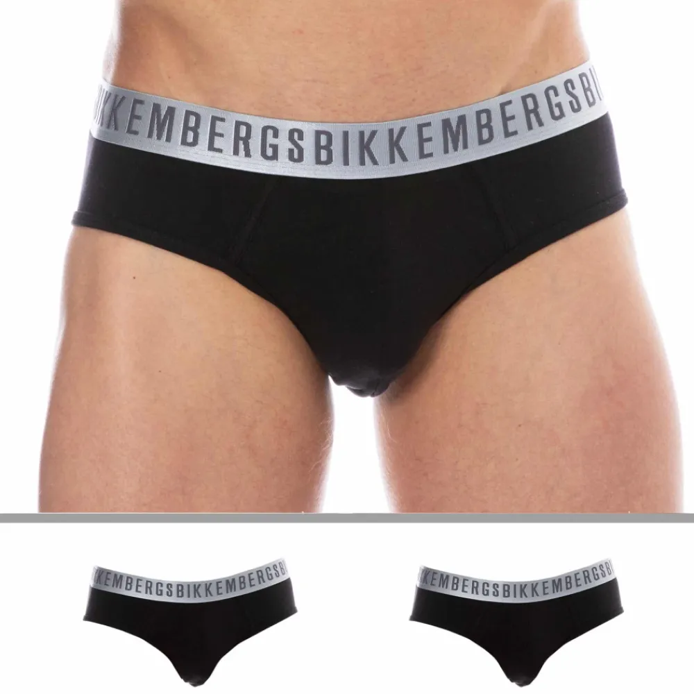 Lot de deux slips en coton extensible, très doux et confortable. Poche frontale doublée. Ceinture élastique logotypée de couleur argentée